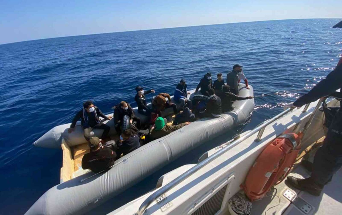 Muğla Kıyı Güvenlik takımları Marmaris ilçesi açıklarında lastik bot içinde bir küme sistemsiz göçmen olduğu bilgisini aldı.